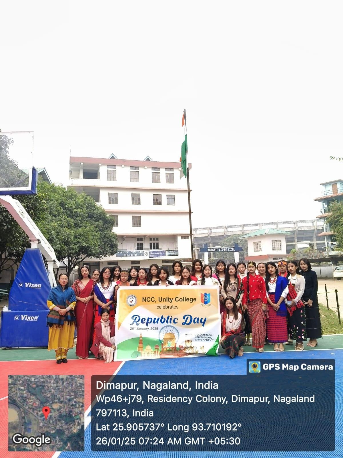 On the occasion of India’s 76th Republic Day, NCC Unity College Dimapur organized a commemorative program on January 26, 2025, centered around the theme “Swarnim Bharat – Virasat aur Vikas” (Golden India – Heritage and Development). The event aimed to pay tribute to India’s rich cultural heritage, promoting respect, reflection, and national unity. Fittingly, the program featured traditional attire, celebrating our diverse cultural roots and honouring the nation’s ‘unity in diversity’.