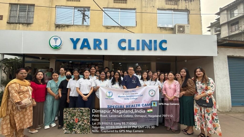 In observance of International Women’s Day, the Women Development Cell (WDC) of Unity College, in collaboration with Yari Clinic, Dimapur, successfully organized a Free Medical Health Check-Up Camp on 7th March 2026 hosted at the clinic’s premises. The initiative saw an active turnout of approximately 80 participants, comprising of students, parents, and children who received specialized consultations from a dermatologist and a pediatrician. To ensure the smooth facilitation of the event, 10 Gender Champions—student members of the WDC—alongside the Cell’s faculty members, provided dedicated on-site assistance to the Yari Clinic staff.