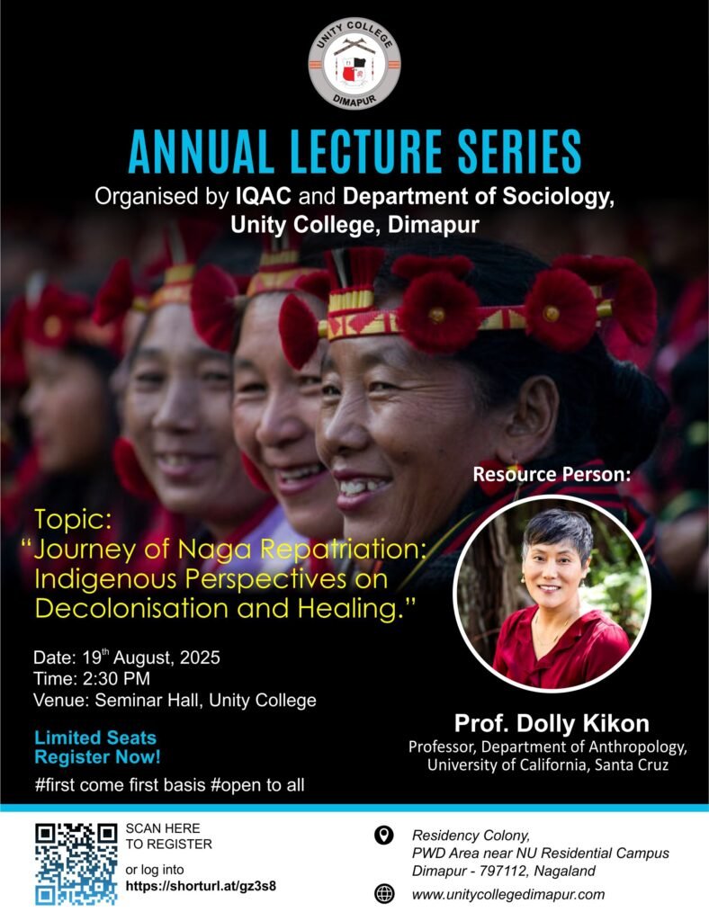 The Department of Sociology and IQAC is organizing the Annual Lecture Series with a Special Lecture on “Journey of Naga Repatriation: Indigenous Perspectives on Decolonisation and Healing“, on 19th August, 2025.
