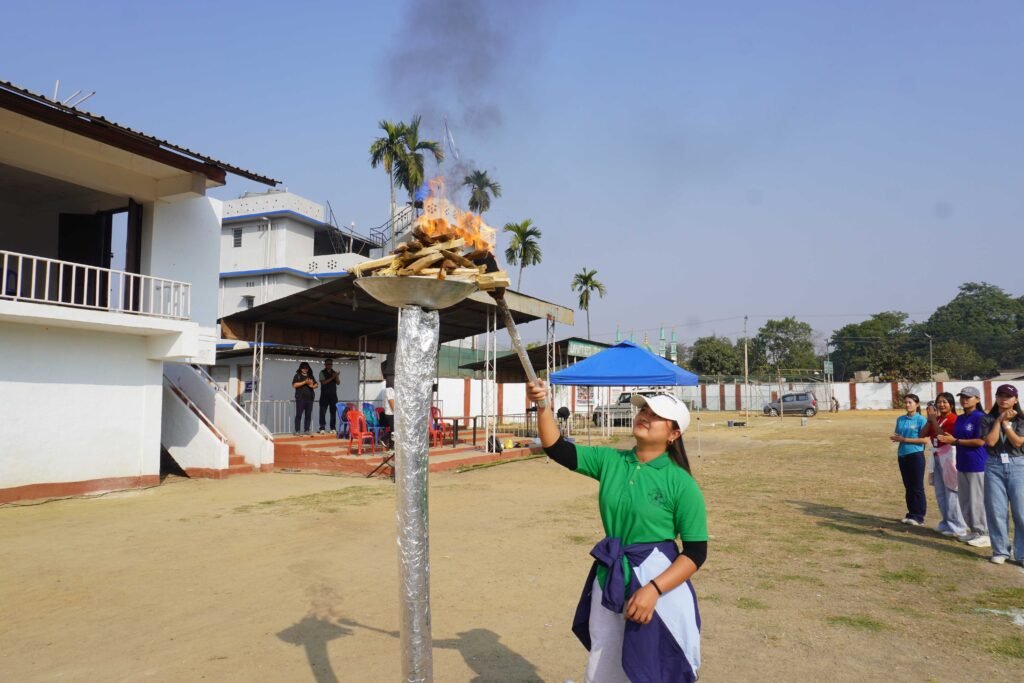 During the inaugural ceremony, Dr. Akala Longkumer, Principal UCTE, exhorted the students by describing the playing field as a vital extension of the classroom. She encouraged the students that winning fosters confidence, while defeat builds resilience, eventually driving holistic excellence. The Oath Taking was led by Moung Lemla, UCPGSC, Sports Secretary, followed by the Torch Lighting Ceremony.