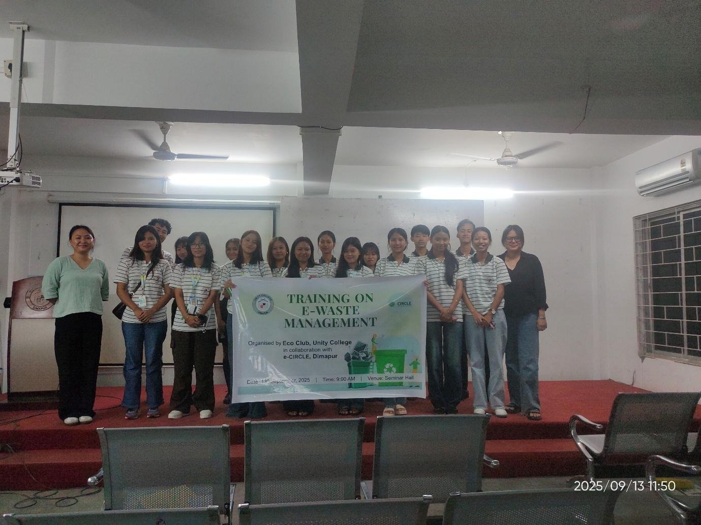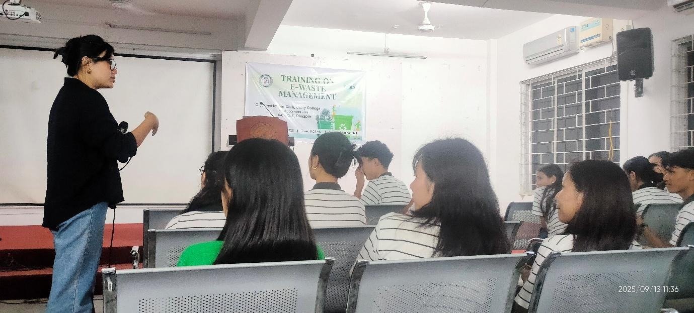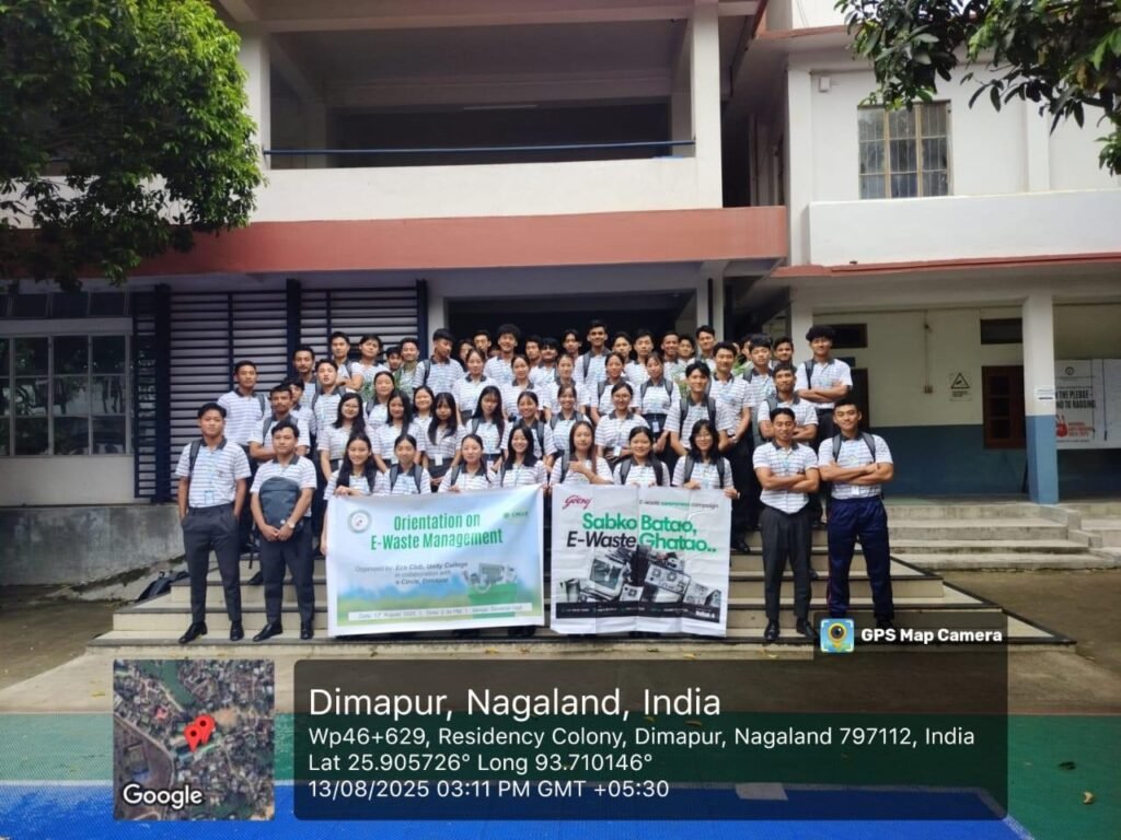 Eco Club and e Circle Dimapur successfully organised e waste orientation on 13th August 2025 and e waste training on 13th September 2025 in the college Seminar Hall. Bendangwala and Soweteu, Co-Founders of e Circle, took the sessions, engaging the students in interactive sessions as well as supplementing extensive introduction to e waste. Equipping the students with the need and knowledge to manage personal e waste through safe and proper channel. The students who participated in the training also had a follow up of visiting classrooms and office to give orientation on e waste management in the campus.