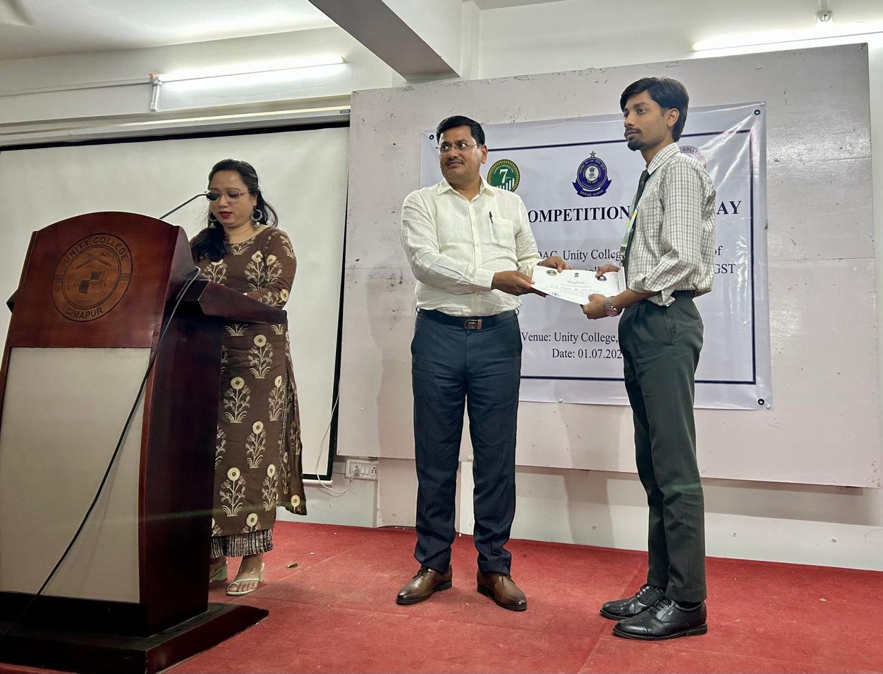 IQAC Unity College and Dept. of Commerce Unity College in collaboration with Central GST Commissionerate Dimapur jointly organised a Speech Competition on GST Day, the 1st of July 2024. The speech competition was held to commemorate the completion of 7 years of implementation of India’s Goods and Services Tax (GST).
