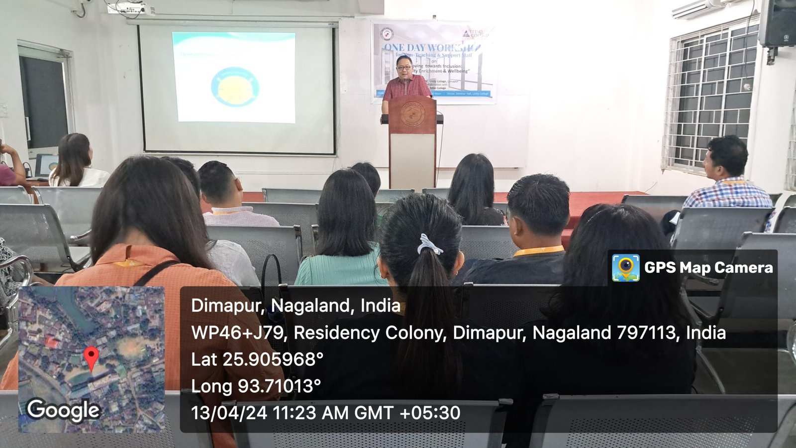 The first session of the one-day workshop on “Moving towards Inclusion: Capability Enrichment & Wellbeing” was chaired by Dr. Adani Ngullie, IQAC Coordinator, Unity College. It commenced at 9:30 AM with welcome address by Dr. Lichumo Enie, the Principal of Unity College. Dr. Enie welcomed all the non-teaching and support staff members of Tetso College and Unity College who had gathered for this enriching session. He also stressed on the need to have such exchanges to learn from each other by exchanging experiences and learning techniques and nuances of logistics.
