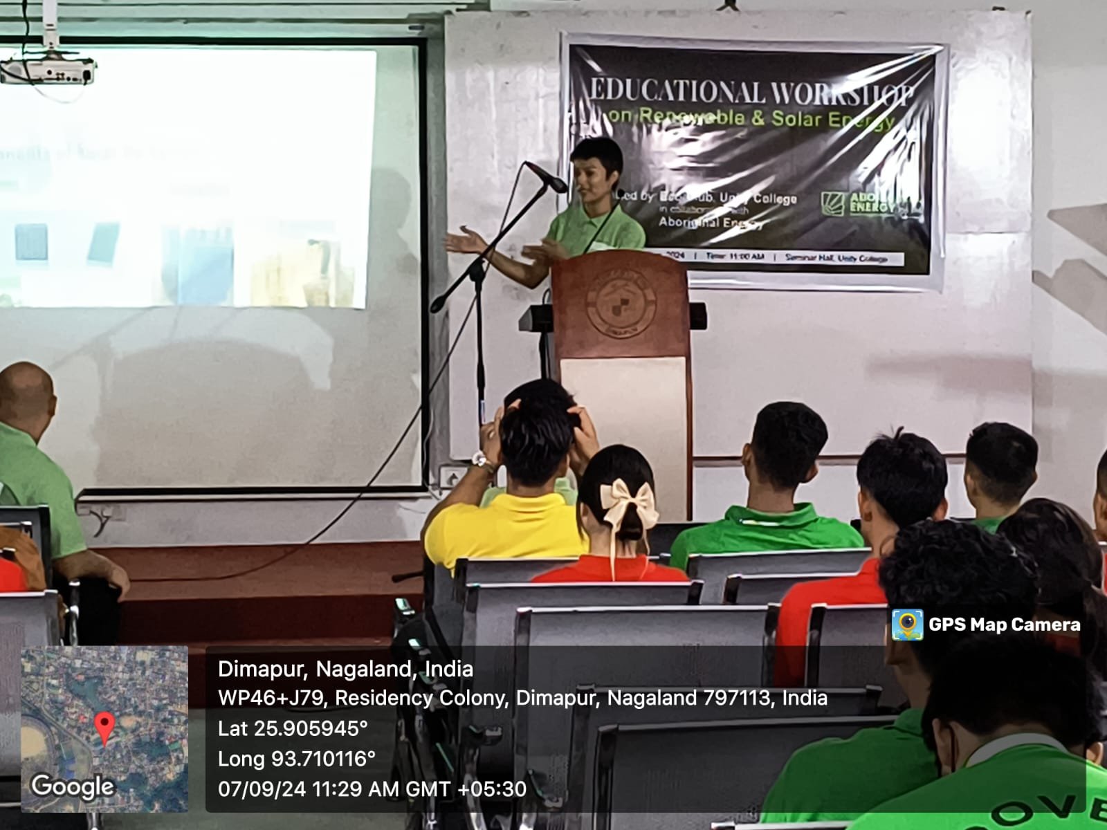 Eco Club in collaboration with Aboriginal Energy, Dimapur organized an educational workshop under the theme ‘Renewable and Solar Energy’ on 7th September at 11:00 AM in the college Seminar Hall. Three resource persons from the Aboriginal team delivered an interactive presentation on solar energy as a source of renewable energy and scope for employment. The presentation was followed by a hands on demonstration on solar light, solar panel and DC home lighting system. A total of 60 students and 4 teachers participated in this workshop.