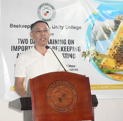 The Unity College, Dimapur Beekeeping Club organised a two days training on the importance of beekeeping and honey harvesting on September 12 and 13, 2025. The resources were Er. Khuvozoyi Vese, Dy Team Leader NBHM, and Shri. Temjenchuba k Char.